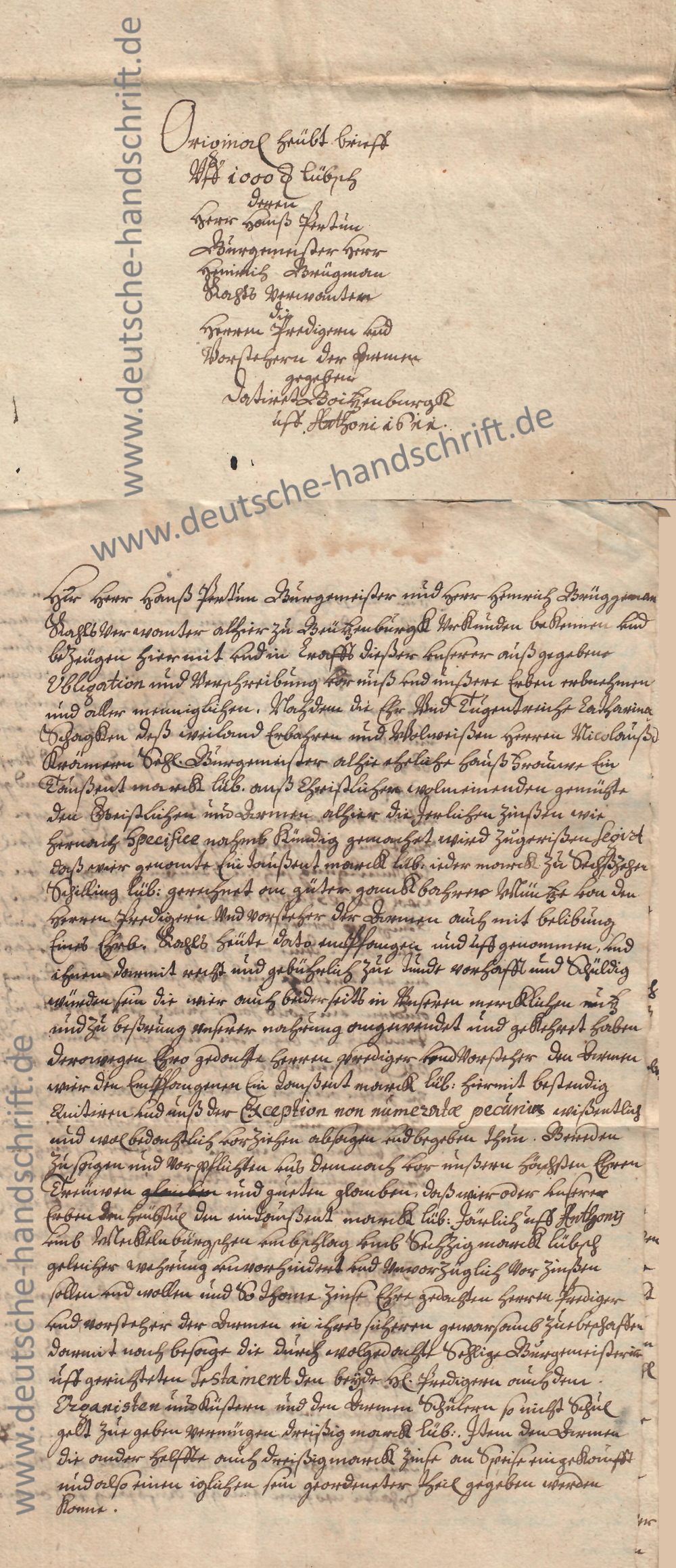 Übung 3 Schenkungsbrief der Witwe des Bürgermeister Nicolaus Krämer, Boizenburg - 17.01.1611