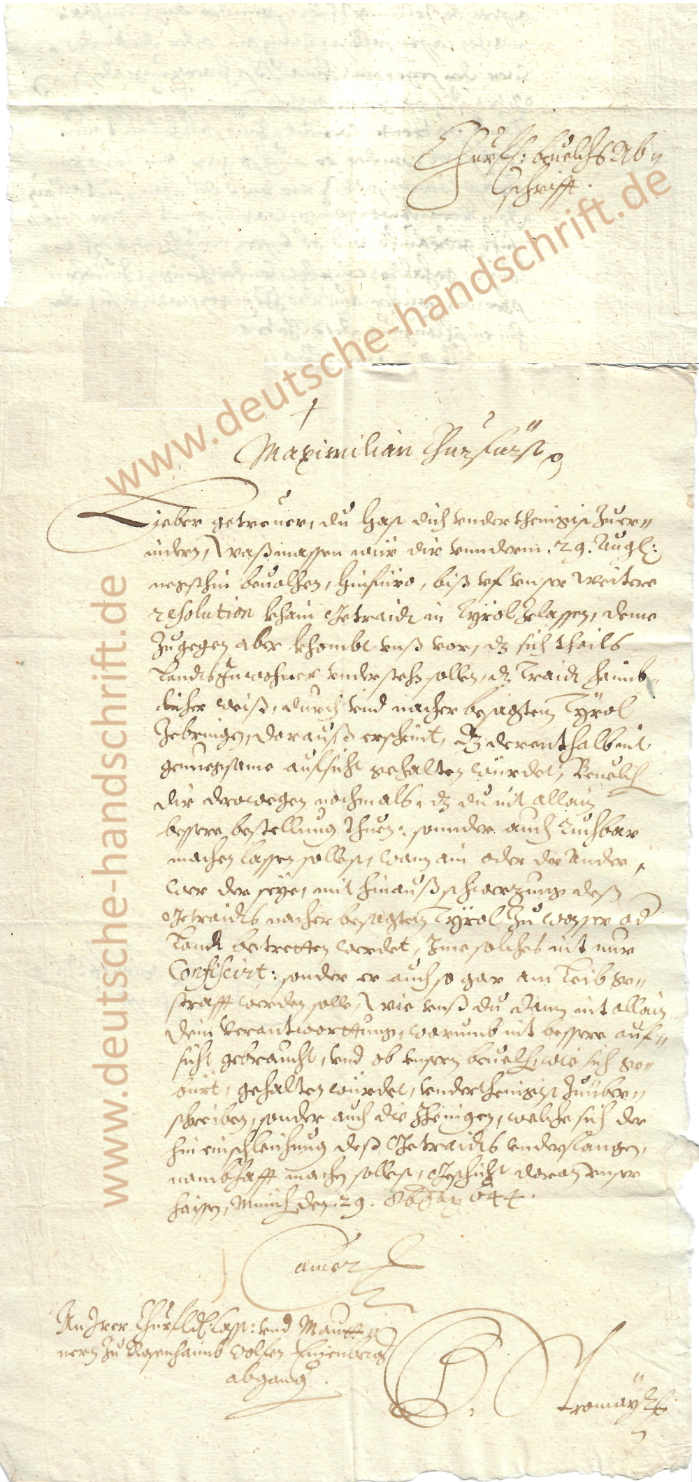 Übung 2 Schreiben / Befehl des Churfürsten Maximilian, München - 29.10.1644 (bzgl. Getreide nach Tirol)